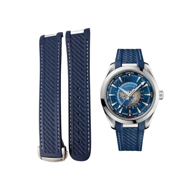 Rubber Strap - For Omega Seamaster Aqua Terra 300 / 150m - Blue/White