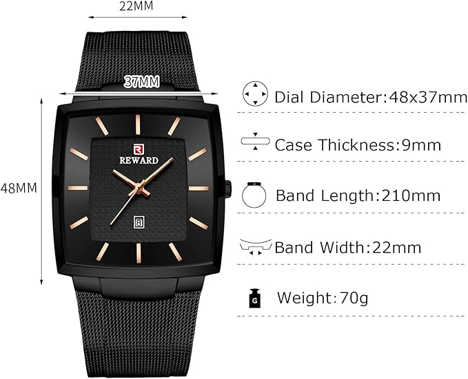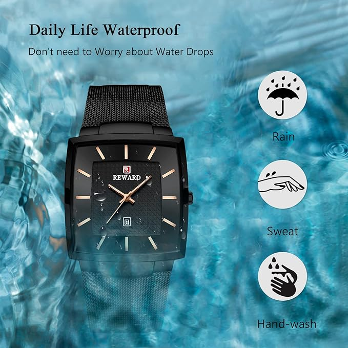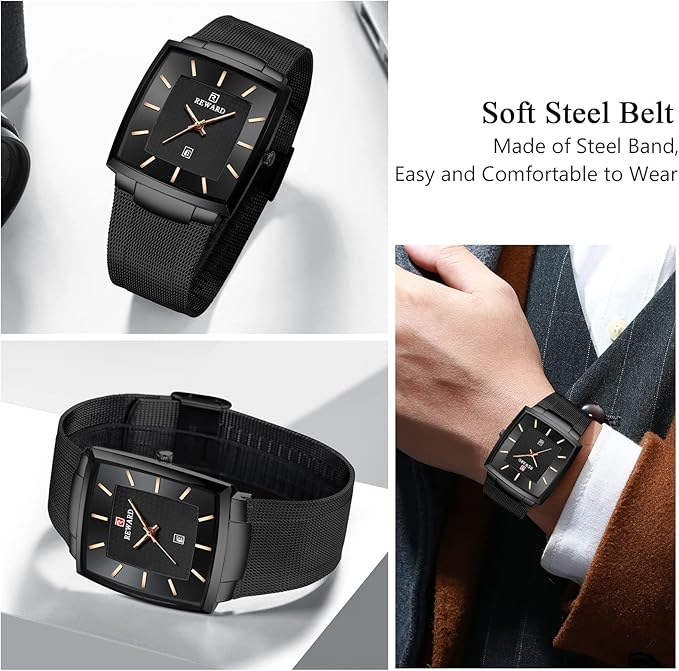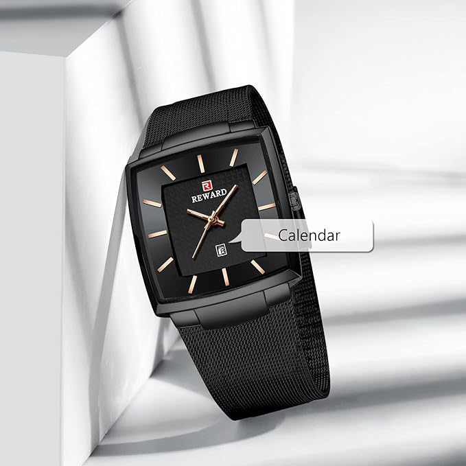【Minimalist Watches for Men】 The classic men's watch with square minimalist dial with three gold hands, simple lines draw the outline of a unique texture. Ultra thin design with large clear dial and analog date display at 6 o'clock, it's easy. Read time.