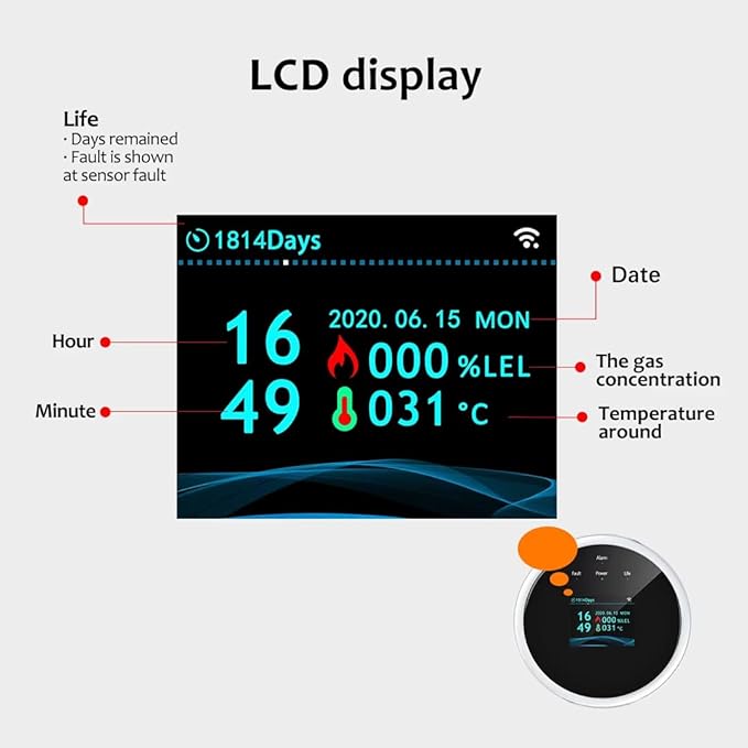 Ledgebit Smart Wi-Fi LPG Gas Leak Detector with LCD Display & Temperature Alarm