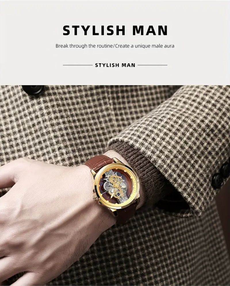 Double-sided transparent hollow automatic mechanical luminous waterproof watch